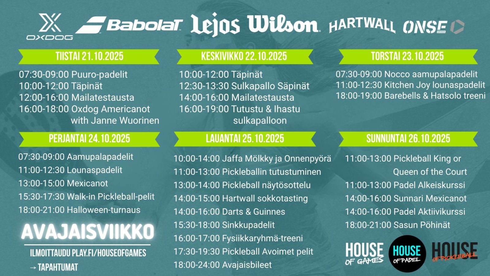Ohjelmaa on koko juhlaviikolle ja tapahtumakalenteri on nyt julkaistu. Kaikki pelitapahtumat löydät varausjärjestelmästämme. Mene osoitteeseen play.fi, etsi House of Games -halli ja klikkaa Tapahtumat -välilehti auki. Osaan tapahtumista ilmoittautuminen on WhatsAppin kautta, jos et ole vielä kyseisissä ryhmissä tutustuthan kotisivuillamme Valmennus – osioon.